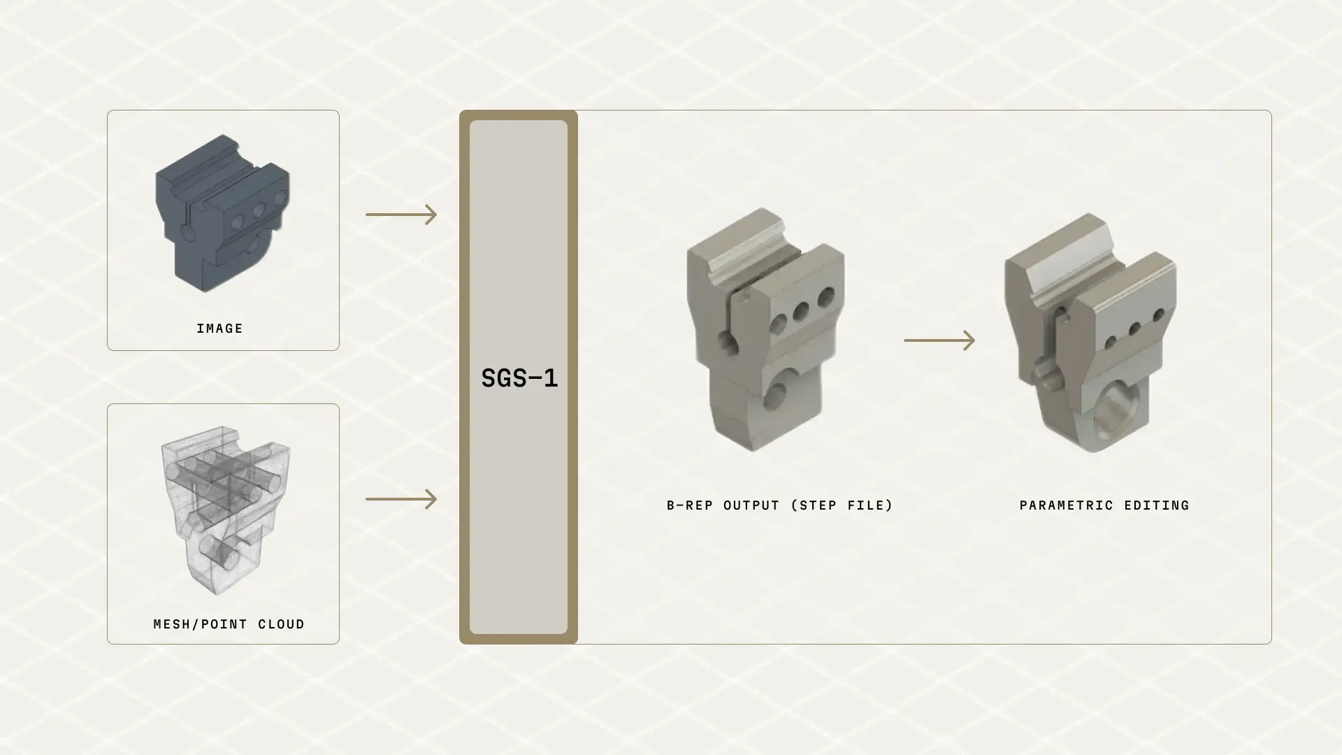 What it is: Spectral Labs is building the "ChatGPT for CAD." Their model (SGS-1) allows engineers to input simple prompts—like a text description, a rough 2D sketch, or a 3D mesh scan—and generates fully editable, parametric 3D CAD files. Unlike topology optimization (which subtracts material), this uses generative AI to create new geometry from scratch.